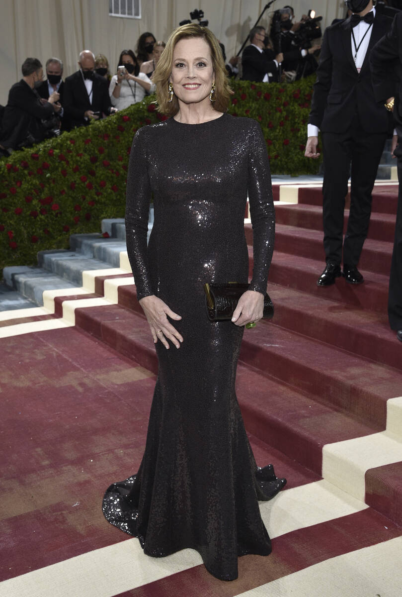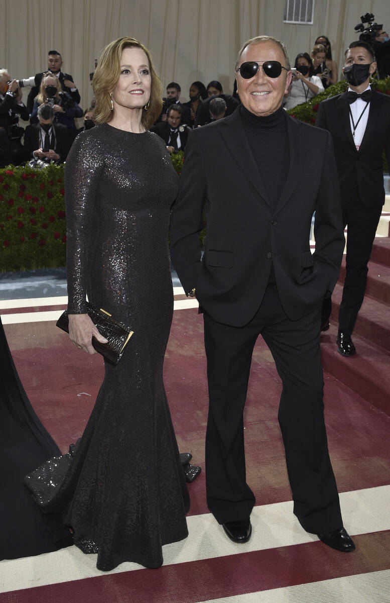 What’s a Met Gala without more than one Kardashian, or six. The entire family showed up, including Kylie Jenner in a white ballgown with a matching hat and big sister Kourtney Kardashian in deconstructed Thom Browne to go with beaux Travis Barker’s Thom Browne suit. Kendall Jenner was in black Prada as she played “devil and angel” with Kylie. Sister Khloe Kardashian was in gold Moschino and matriarch Kris Jenner wore canary yellow from Oscar de la Renta, an ode to Jackie Kennedy Onassis — her hair in a ’60s flip.