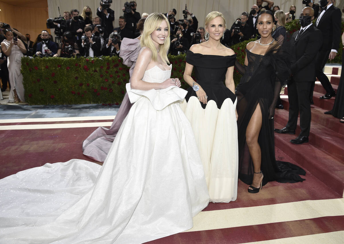 New York Mayor Eric Adams put politics front and center in a tux emblazoned with “End Gun Violence” on the back. Former presidential candidate Hillary Rodham Clinton was in a Bordeaux-colored gown designed by Joseph Altuzarra with the names of historic women sewn into the hem and neckline. They include Abigail Adams, Shirley Chisolm and Madeleine Albright.