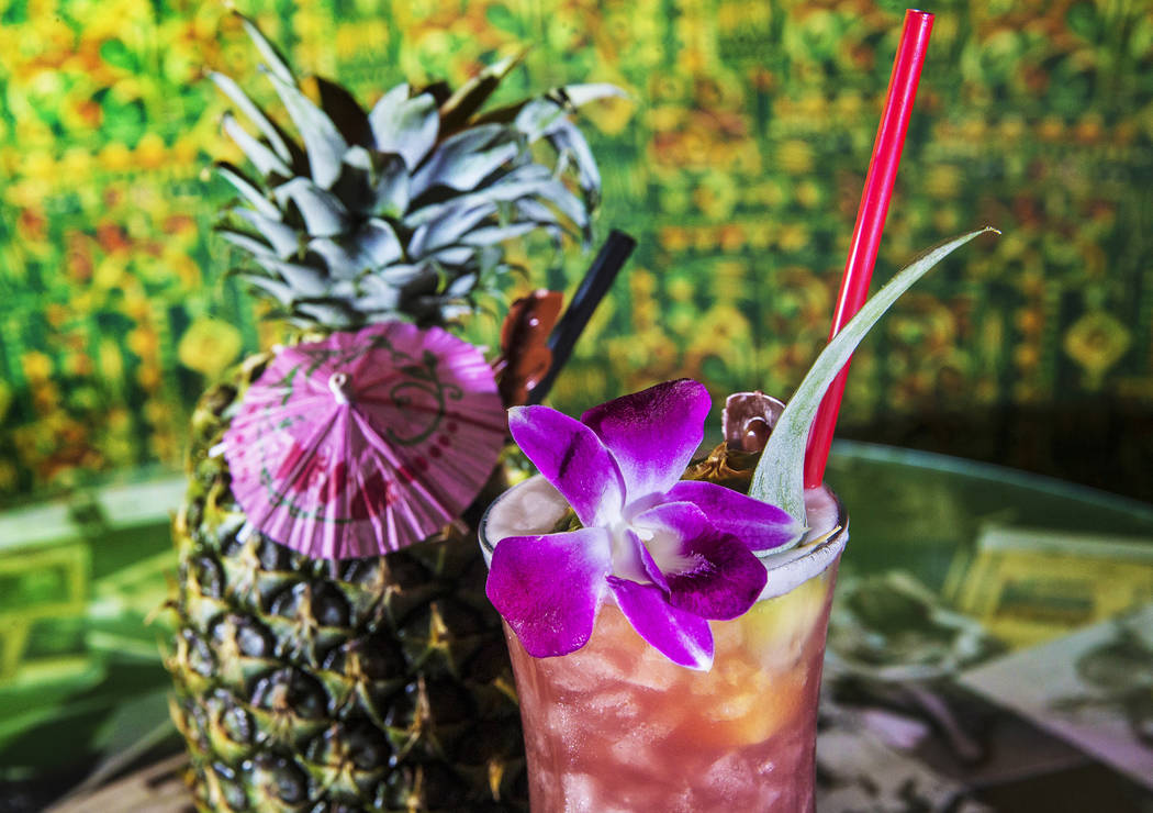 The kuuipo, with J. Wray golden rum, Lejay crème de cassis, pineapple juice, pineapple gomme syrup and lime juice in pineapple at The Golden Tiki. Benjamin Hager Las Vegas Review-Journal