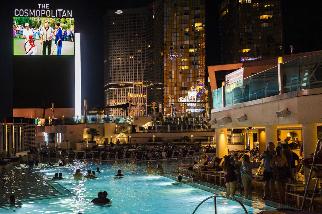 Poolgoers enjoy a showing of “Happy Gilmore” during Dive In Movies at Boulevard Pool at the Cosmopolitan Las Vegas on Monday, June 5, 2017. Benjamin Hager Las Vegas Review-Journal