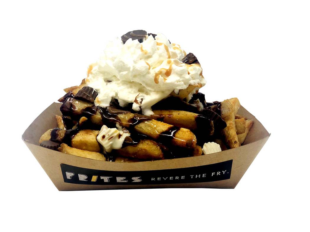 Frites, Excalibur, friteslasvegas.com: Trick or Treat Fries, which are french fries sprinkled with peanut butter cups, chocolate sauce, marshmallow and malted whipped cream, $9, Saturday through Thursday.