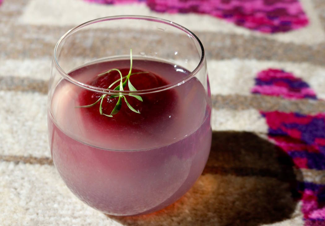 A “sacred heart” hibiscus ice sphere “bleeds” as it melts, changing the flavor and color of the tequila blanco, lime and agave, $16. Available through Nov. 2.