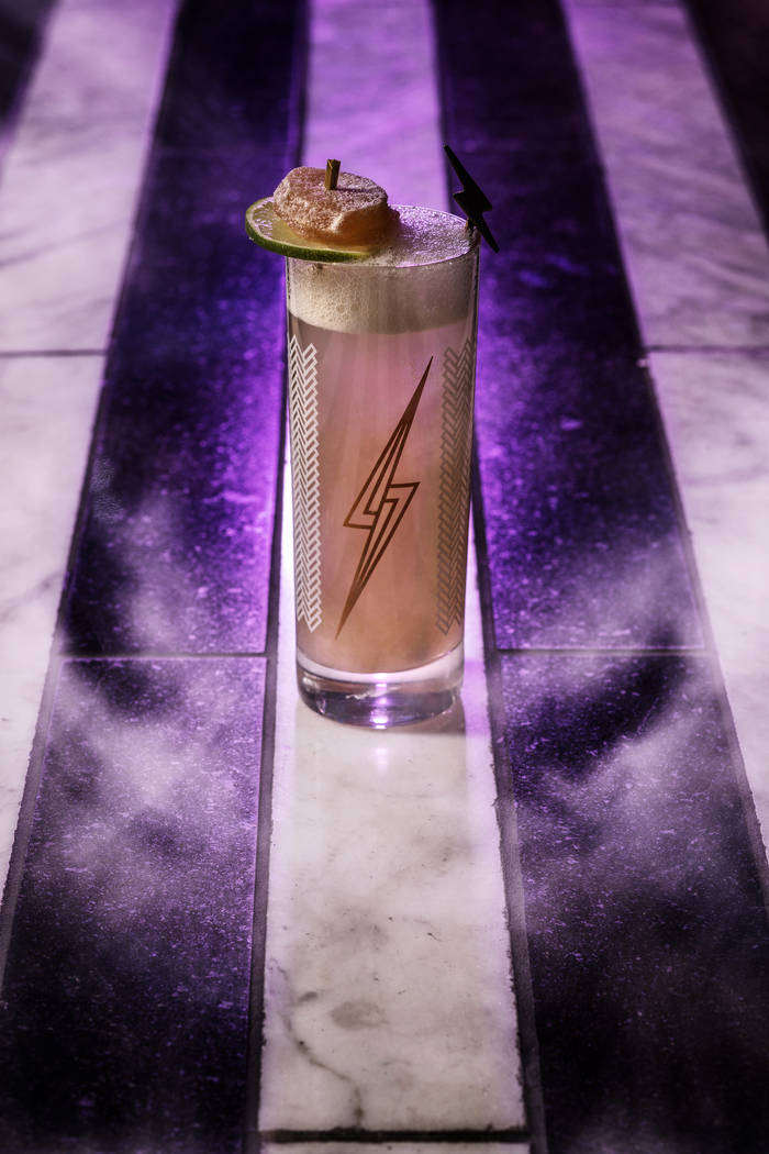 Rosina’s Golden Apple is true to its name, blending Laird’s Apple Brandy, Four Roses Bourbon, honey, lemon and allspice, poured over a 2-inch-square ice cube and served with a pumpkin-spiced caramel apple. $18, Oct. 31-Nov. 3.