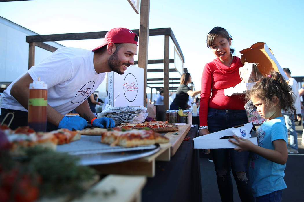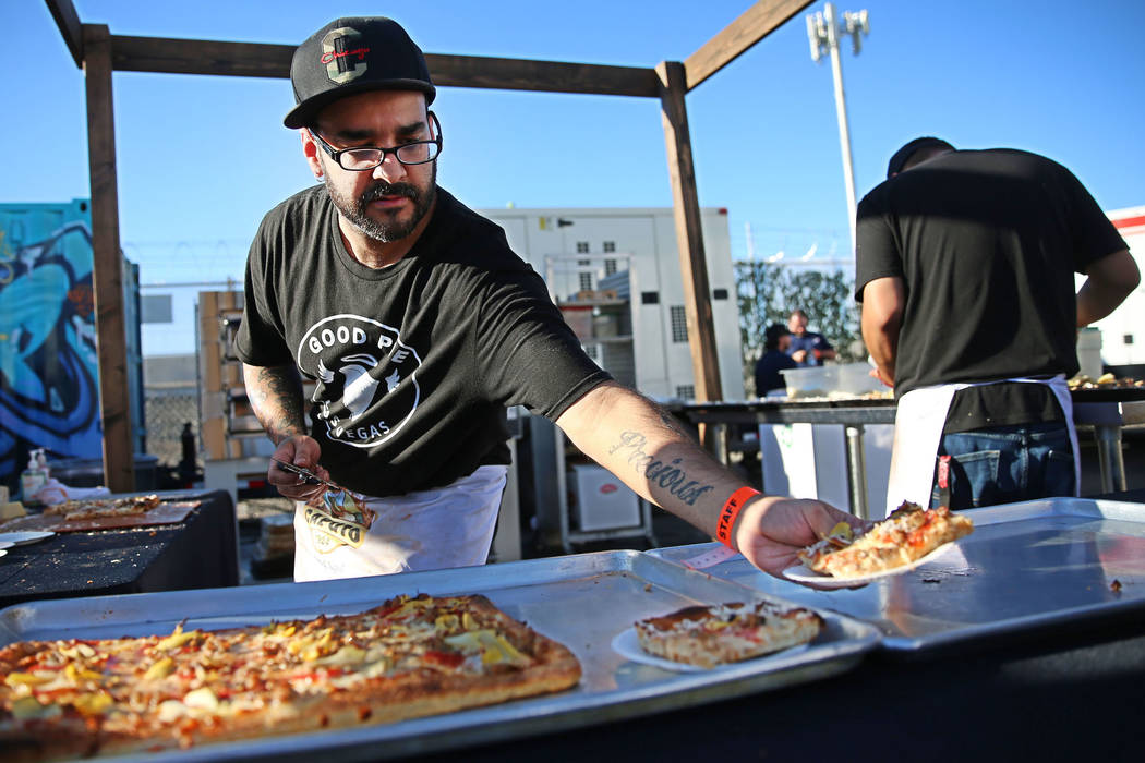 On Saturday afternoon at the Industrial Event Space on Industrial Road near Sahara Avenue, they figured they got their money’s worth, as about 20 local pizza makers showed their stuff to an estimated 1,500 people. The pizza makers were spaced around the venue’s outdoor area, with a bar in the center and picnic tables and benches for seating. Drinks were included for those with tickets to the indoor, air-conditioned VIP area.