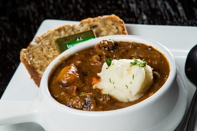 Slowly braised Angus beef and potatoes are flavored with carrots, celery and onions in a Guinness stout gravy and served with whipped potatoes and grilled country bread, $18.