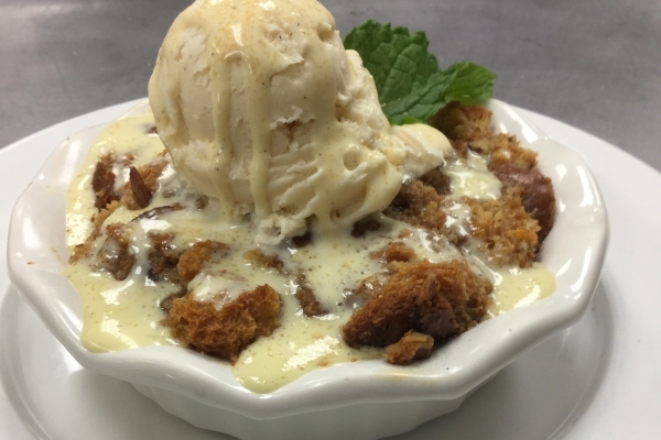 Eggnog bread pudding made with brioche is served with bourbon creme Anglais and topped with McConnell's Egg Nog ice cream, $8.50, through the end of December.