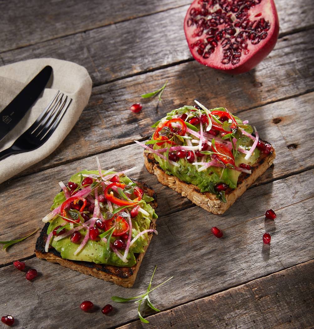Chica’s avocado toast starts with toasted ancient-grains bread from Bouchon Bakery, which is topped with avocado mousse, sliced avocado, pomegranate seeds, pickled Fresno chilies, watermelon radish and toasted pumpkin seeds, $13 during brunch from 8 a.m. to 4 p.m. weekends.
