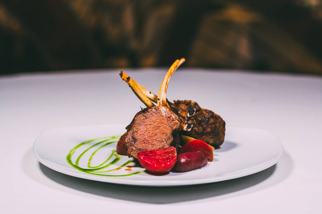The Tropicana’s steakhouse serves its Colorado lamb chops atop charred eggplant and with tri-colored peewee potatoes, confit baby tomatoes and flourishes of mint and pomegranate sauces, $49.