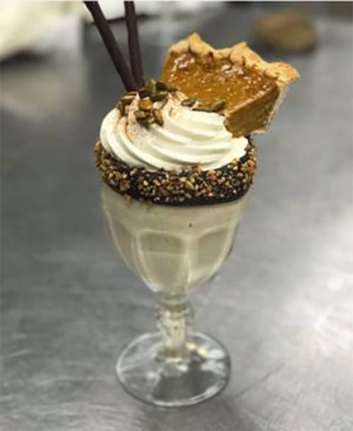 It’s a milkshake! It’s pie! It’s a milkshake topped with pie! The pumpkin milkshake at the fledgling MB Steak starts with pumpkin cheesecake ice cream (with a chocolate rim), which is crowned with cream cheese whipped cream and, yes, a wedge of house-made pumpkin pie. It’ll be available through the end of November.