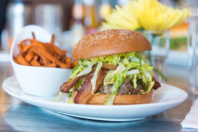 This New Mexican-style burger is topped with jack cheese, jalapeno bacon and heirloom tomatoes, $16.