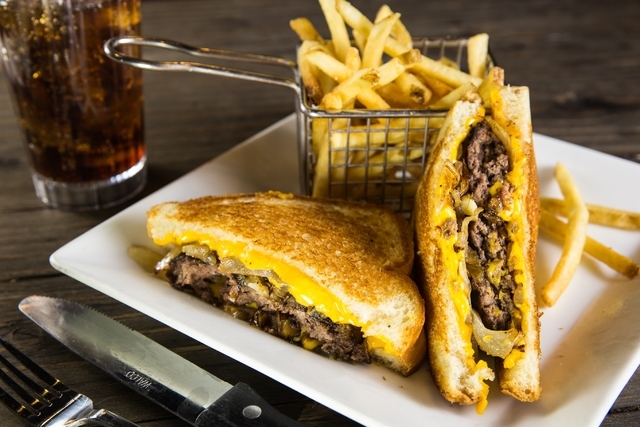 This is the best of both worlds: a half-pound Angus beef patty with grilled onions with a grilled-cheese sandwich for a bun, and Thousand Island dressing on the side, $8.99.