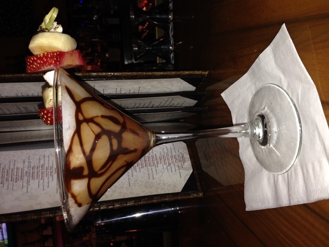 Van Gogh chocolate vodka is mixed with Smirnoff strawberry vodka, banana rum, Godiva white chocolate liqueur and strawberry-banana juice, $12.