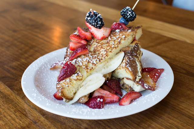 Bacon, bananas, peanut butter, strawberries and Nutella are sandwiched between slices of French toast, $13.