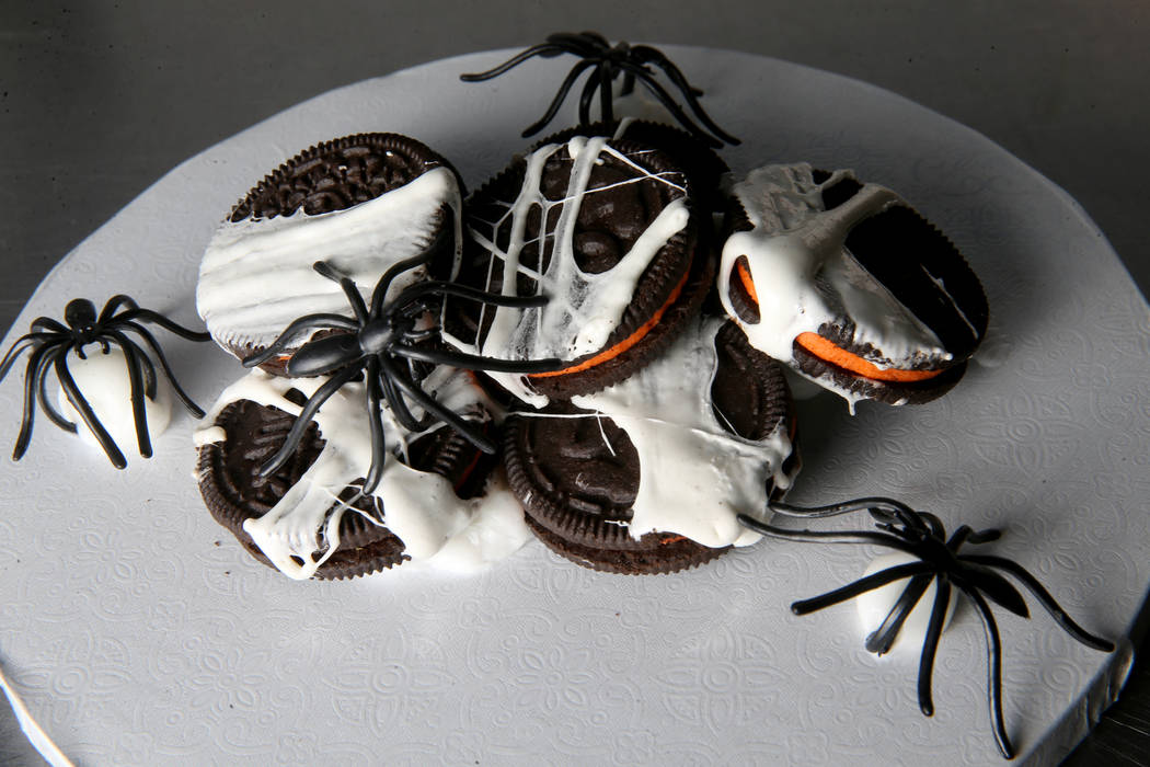 “You want to get mini-marshmallows and put them in a bowl, and just microwave them for about 10 to 20 seconds. And then when you go to dip your (gloved) fingers in it, they’ll kind of spread apart. And you just go ahead and drape that over whatever you’re trying to make, and you have an edible spider web.”