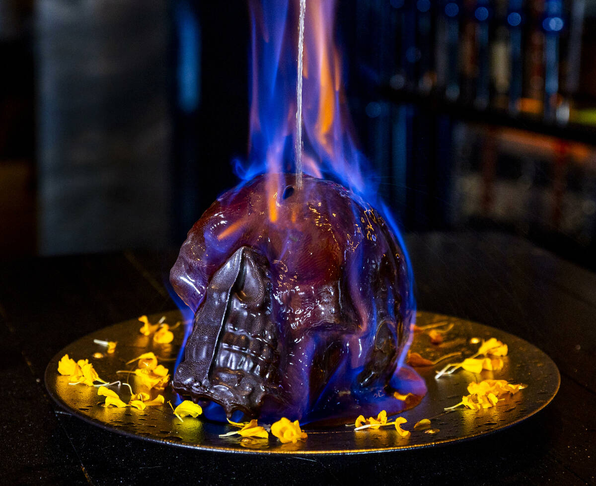 The Diablo Skull en Fuego at Mijo Modern Mexican begins with a chocolate skull touching down. Flaming chocolate mocha sauce is poured over the skull, which melts to reveal a chocolate flan with red fruit salsa. Pair the dessert with an aged tequila chosen from dozens on the list. $19.