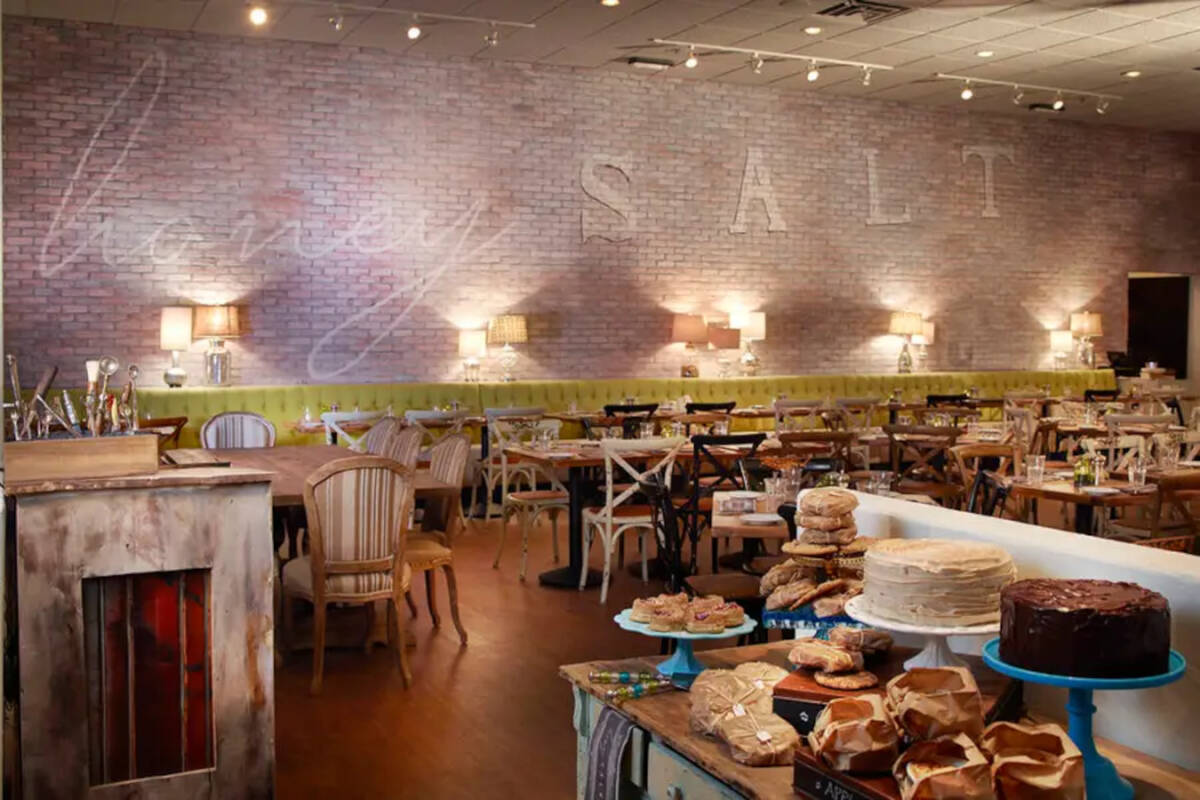 Culinary power couple Elizabeth Blau and chef Kim Canteenwalla own Honey Salt (and a lot more), so the place feels ideal for power lunch. And the airy restaurant, like a rustic-chic garden room, feels ideal for the bright, fresh menu. Toast your health with kale-ginger salad in a glass. Quinoa, beluga lentils and avocado join forces for a Grain Power salad. A house version of Durkee Famous Sauce supplies creamy tang to the buttermilk fried chicken sandwich.