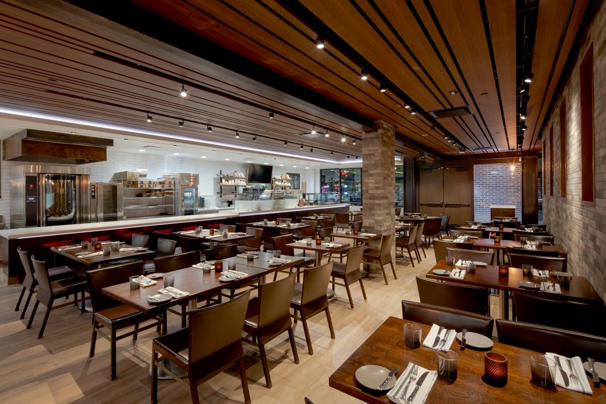 The restaurant sports a power provenance: It was opened by a top executive for Wolfgang Puck, one the country’s (and Vegas’) original celebrated chefs. Mainstays for lunch, served weekdays, range from a Greek salad with shrimp and feta to a smoked bacon BLT with heirloom tomatoes on freshly baked and toasted milk bread to a wagyu burger topped with American cheese, kosher dills and dijonnaise. On your way out, grab a loaf from the superlative bakery.