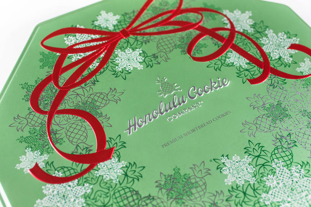 Honolulu Cookie Company, known for its macadamia shortbread cookies, offers seasonal flavors of dark chocolate peppermint, white chocolate peppermint, white chocolate pumpkin and white chocolate ginger-spice in the familiar pineapple shape. They’re available in various combinations in various sizes. 30-cookie tin, $27.95; Grand Canal Shoppes and The Linq Promenade or honolulucookiecompany.com