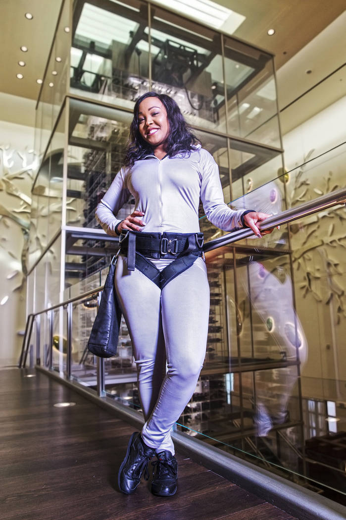 Lomax has been doing it for 10 years. Her only physical training was participating in acrobatics and dance in high school. More relevantly, after earning an associate’s degree, the Las Vegas native had worked as a hostess at Strip fine dining establishments Valentino and Postrio. It was at the latter that she first heard about the angels and decided she wanted the job.