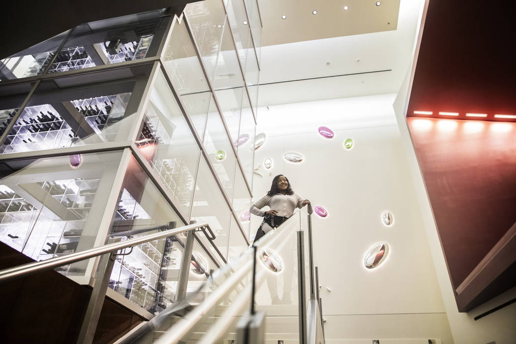 Lomax is an Aureole “wine angel,” one of the more unusual tourist attractions in a city with no shortage of such things. And stocking the shelves of the signature wine tower at Charlie Palmer’s fine dining restaurant is just the beginning of a typical evening spent amazing and entertaining diners and passers-by.