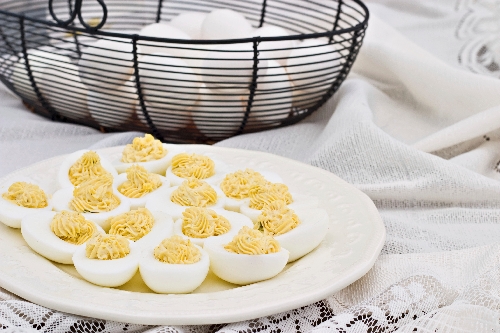 If you need a specific number of deviled eggs -- to fill the wells in a deviled-egg plate, for example, or for appetizer servings at dinner -- plan on making two or three extra, because no matter how carefully you work, you probably will have one or more eggs that do not peel smoothly or whose off-center yolks leave a wall too thin for stuffing.