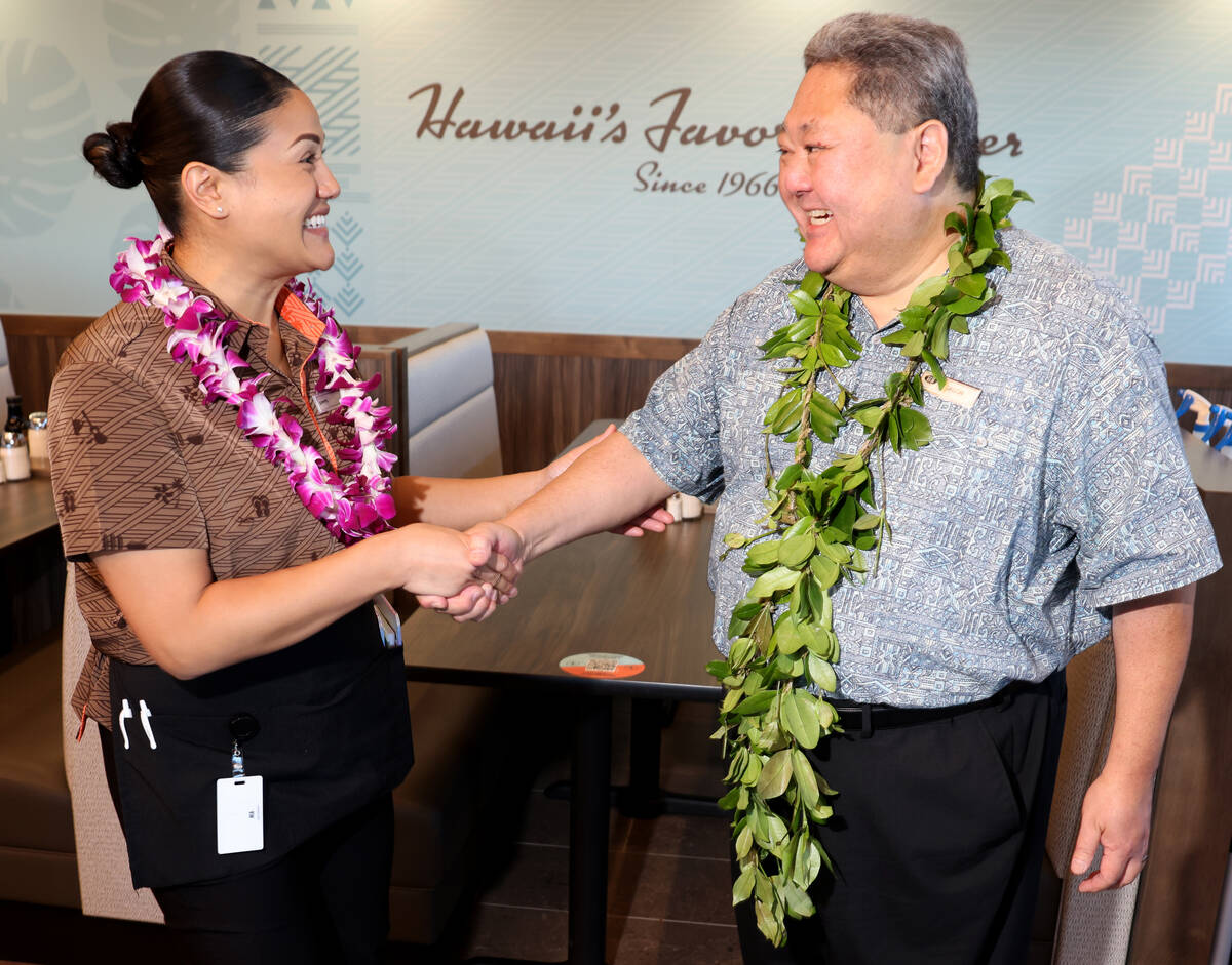 Fani Leilua, the Salt Lake City matriarch, and her family were first in the door (just as they had been first in line). At least 100 staffers (out of 200 hired) wearing orchid leis clapped and offered alohas as folks streamed in past the pastry case toward the dining room.