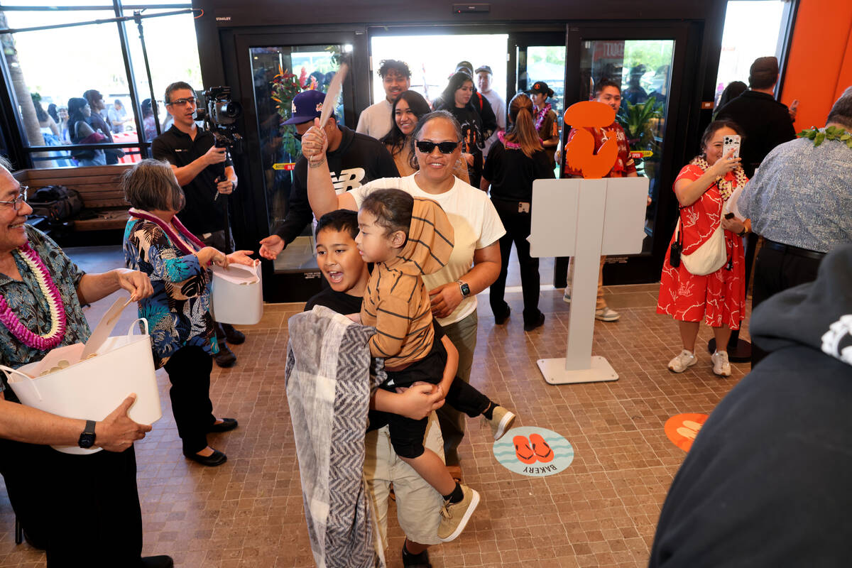 Over at the dine-in line, about 200 strong, Fani Leilua held her 2-year-old grandson, Legend, who napped in her arms. Leilua, Legend and five other members of the family traveled overnight from Salt Lake City for the launch, pulling up just before 4 a.m. They were the first people to arrive, Leilua said.