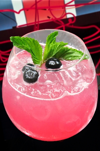 An example is the H.K. Antioxidant (H.K. standing for "Hell's Kitchen," the TV show inextricably linked to Ramsay). The standard version of the drink contains Vive acai berry liqueur with muddled blueberries, agave nectar and fresh lemon juice. For the nonalcoholic version, they leave out the liqueur and add 7UP and soda water, "which makes it a little more refreshing," before garnishing with blueberries and a mint sprig.
