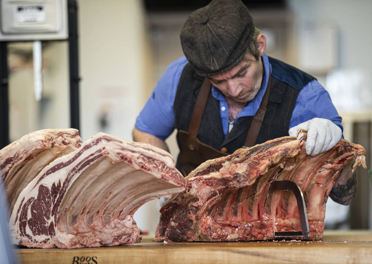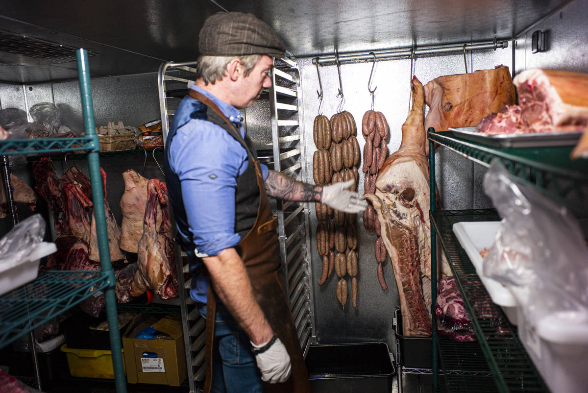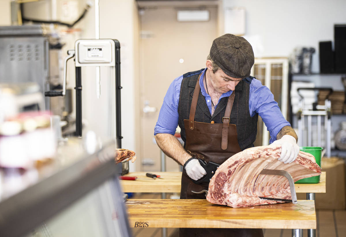 The whole carcasses arrive in his shop — a steer every two to three weeks, two or three pigs and three lambs a week — and he and apprentice James Henderson butcher them. The premium cuts may be dry-aged to improve flavor and texture. Other parts are turned into ground meat, sausages or meat pies or sold to someone who makes jerky. Even the fat is used, rendered for the pastries for the meat pies.