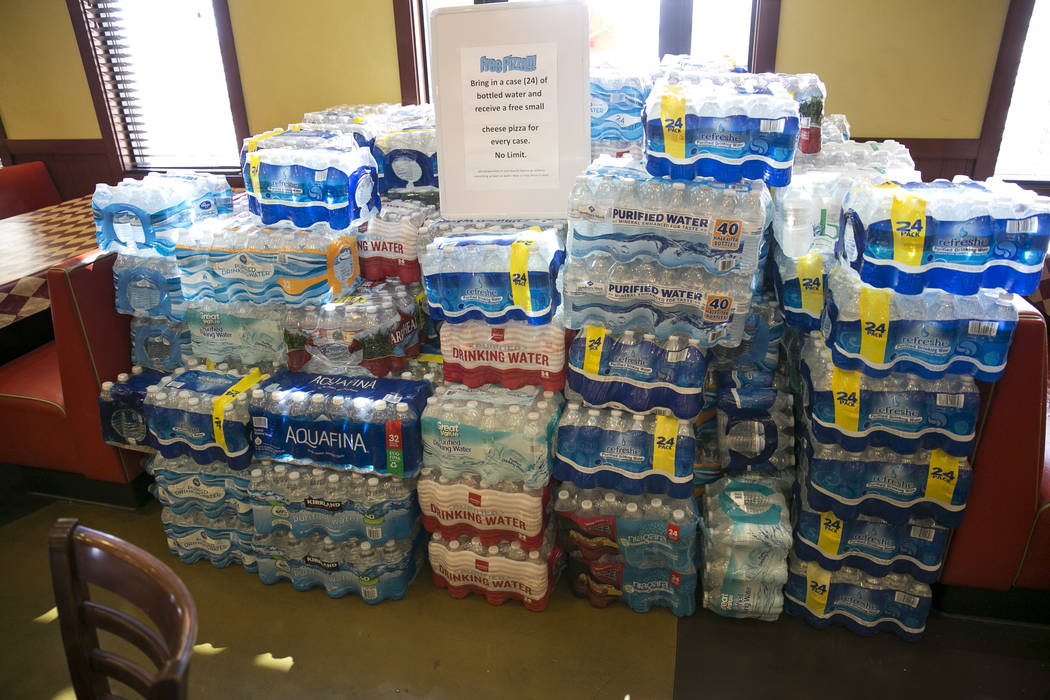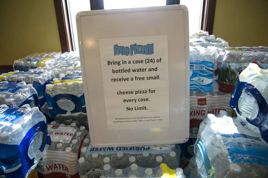 When Metro Pizza co-owner John Arena announced that anyone who brings in a case of bottled water would get a free cheese pizza in return, he expected to collect a couple of hundred cases. By Thursday the total was more than 1,400 — and counting, because the drive goes through Monday.