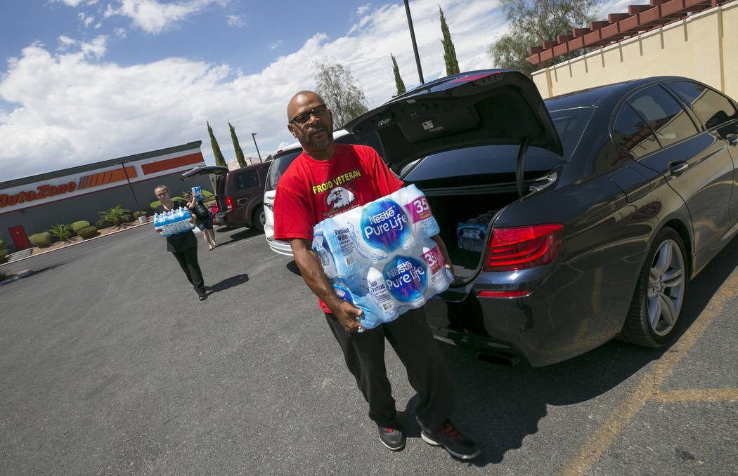 The water is to be donated to Catholic Charities of Southern Nevada, Three Square food bank, The Shade Tree and Safe Nest.