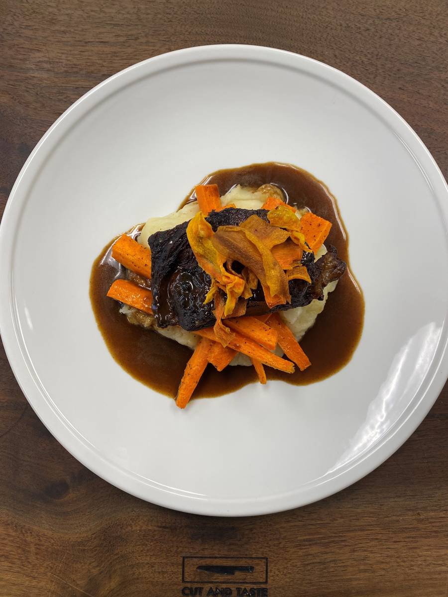 This weekend’s menu is Dr. Pepper-braised beef short ribs with potato puree and heirloom carrots, $35; pan-seared shrimp with Israeli couscous and yellow tomato puttanesca, $40; truffle mac and cheese with herbs, $15; and spiced apple Caesar salad with garlic croutons and apple-cider Caesar dressing, $10. Each dish serves two, and those ordered in advance can be picked up at the truck at Grand Canyon Drive and Deer Springs Way on Friday.