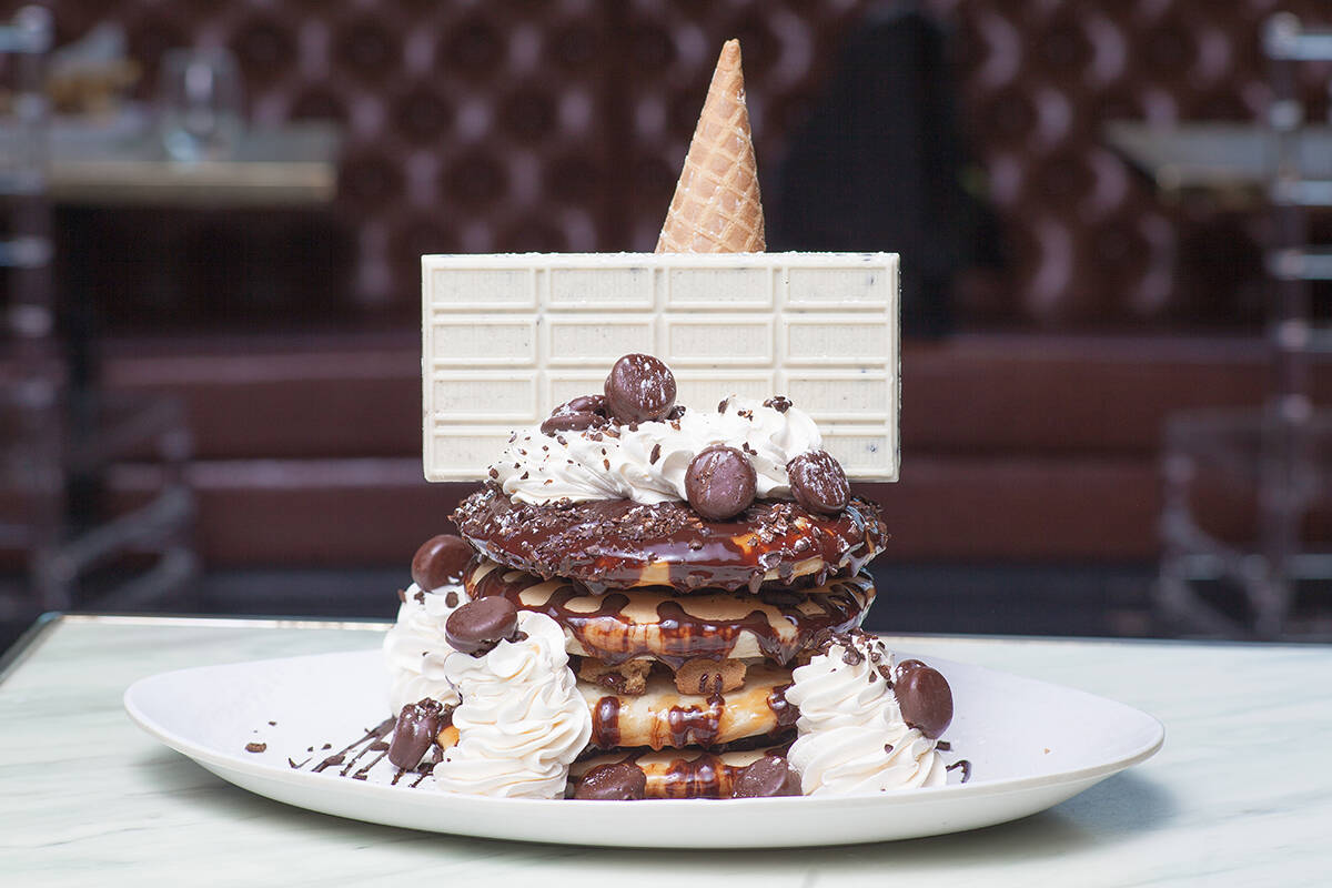 The new Sugar Factory American Brasserie, located at Harmon Corner Retail Center, introduces a brunch menu featuring a limited edition Pink Cloud Pancake Stack.