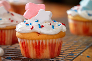 Prepare cake batter and bake as directed on package for 13-by-9-inch pan. Cool cake in pan 15 minutes.