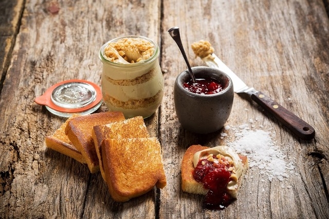 Shared plates, jars and toast: Tuna carpaccio, $14; scallop tartare, $14; wood-roasted clams, $15; butcher steak tartare, $14; hearth-cooked wings, $12; foie gras mousse, peanuts and jelly, $16; baked ricotta, $16.