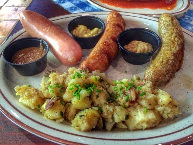 Tucked into a small Henderson strip mall, Bavarian Castle is like a quaint slice of Germany in a modern desert. Painted in Bavarian blue with a large mural of Schloss Neuschwanstein, a true Bavarian castle, the space provides its customers with an authentic German dining experience. The restaurant serves traditional German dishes such as schnitzel (breaded pork cutlet) with fried potatoes and salad; sauerbraten (pot roast) with spaetzle (dumplings) and red cabbage; and rouladen (rolled beef filled with onions and pickles) with dumplings and red cabbage. In addition, the restaurant also serves a variety of wursts (sausages), including the Bavarian bratwurst, German bockwurst, currywurst and beer bratwurst. Vegetarian entrees include potato pancakes with apple sauce and Bavarian pretzel dumplings with creamy mushroom sauce. Meals range from $8.95 to $30. The children’s menu offers schnitzel, German hot dogs and baked cheese spaetzle for $7.95 each. Soups, salads and dessert also are available. Bavarian Castle is open from 11 a.m. to 9 p.m. Sunday and Tuesday through Thursday and 11 a.m. to 10 p.m. Friday and Saturday. The restaurant is closed Monday. For more information, visit tinyurl.com/bavariancastle.