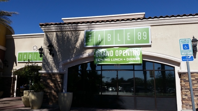 Diners wandering into the spot that once housed Sammy’s Woodfired Pizza & Grill in the Montecito Marketplace are now greeted by a new fast-casual concept called Table 89. The new eatery is owned by the creators of Sammy’s and features many of the same menu items but without the wait staff. Instead of being shown to a table, diners order and pay at the front counter and then seat themselves. Your food is then brought to your table. Although Table 89’s menu is smaller than the original Sammy’s, it includes a lot of old favorites: mini duck tacos and hummus with grilled flatbread are on the small plates menu, and woodfired pizzas include Prosciutto Pear and Margherita. The dessert menu still features Sammy’s famous Messy Sundae. The new menu, which promotes itself as being “globally inspired and locally produced,” also features fresh tomato basil soup and lobster bisque, along with salads and sandwiches, including Steak & Watercress Sandwich on multigrain or plain ciabatta, served with house-made potato chips or coleslaw. Specialty salads include Organic Wild Arugula & Beet Salad with balsamic dressing, and signature salads include Thai Shrimp Salad with spicy ginger dressing. Grilled herb ciabatta bread with various toppings (chicken, steak, shrimp, tofu, salmon) can be added on with the salads. The main plates menu includes fried chicken breast with kimchi and creamy herb dipping sauce and chicken tequila fettuccine with tequila-lime cream sauce. Menu items average $10 to $12, and desserts are around $5. A children’s menu is available for diners 10 or younger, and adults can pair their meal with wine or beer. The inside is spacious with booth and table seating, and there is a patio with covered tables. Take-out and catering are available. Table 89 is open from 11 a.m. to 9 p.m. daily. For more information, visit table89lv.com.