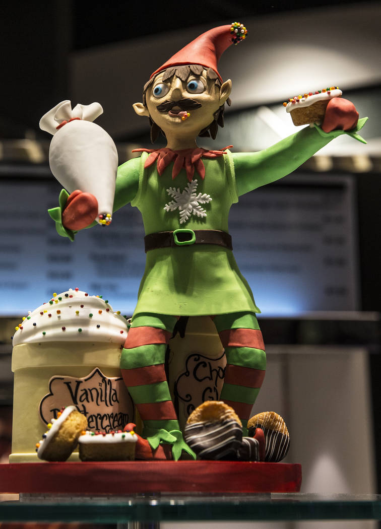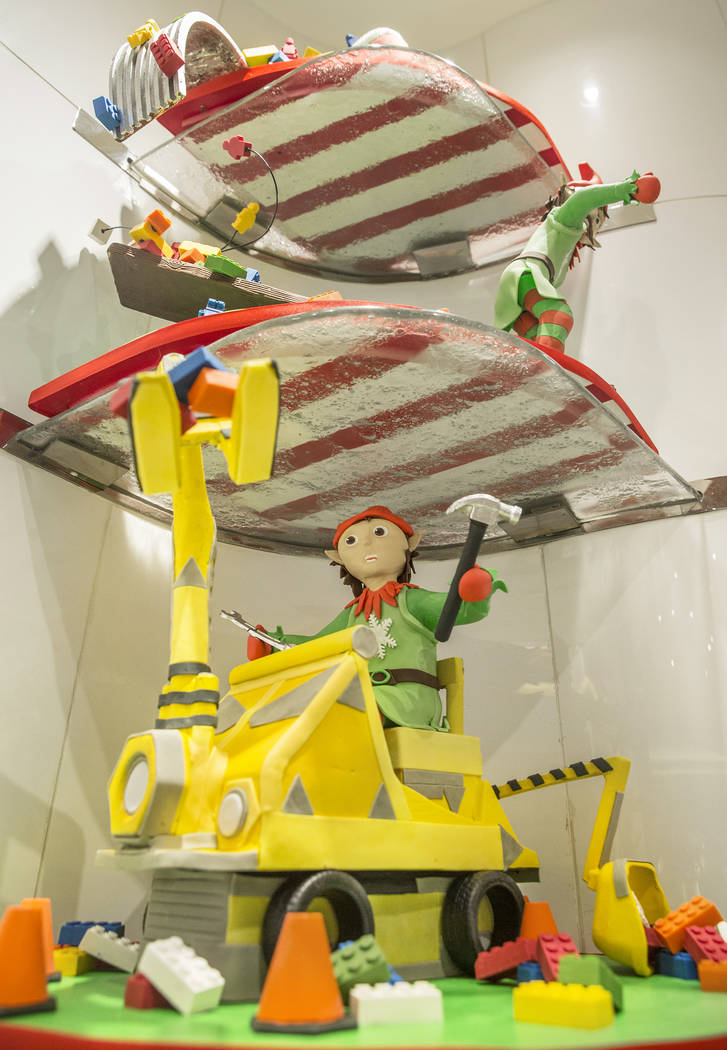 Before dawn Thursday, a troupe of elves made their way to the Jean Philippe Patisserie shop at Bellagio to claim their spots for the Christmas season. In keeping with the resort’s toy theme for the holidays, the elves are occupied — or pre-occupied — with Lego building blocks, playing with them, buried in them, poised to scoop them up with a backhoe and, in a scene that will be painfully familiar to a lot of parents, even stepping on one.