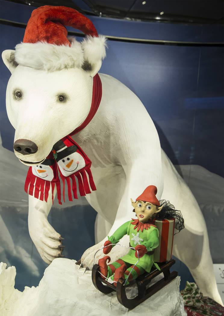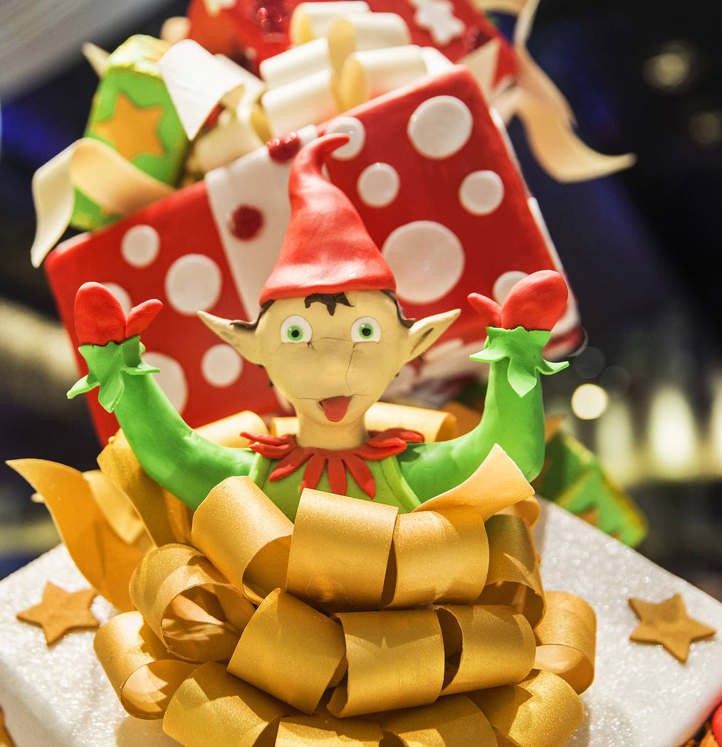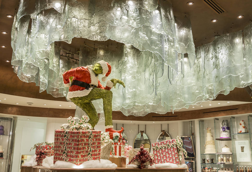 Elves have taken over the pastry shop at Aria, too, but instead of a family of Lego-lovers, they’re chefs — one eating a cookie, one eating ice cream — in scenes with the shop’s beloved polar bears and very large and venerable Grinch.