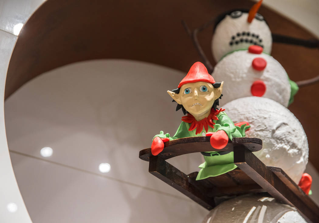 All of the pieces were made by the staff of Jean Philippe Patisserie, and they’re completely edible, with bodies made of chocolate, clothing of fondant and “cosmetics” of colored cocoa-butter. They’ll be on display until the new year.