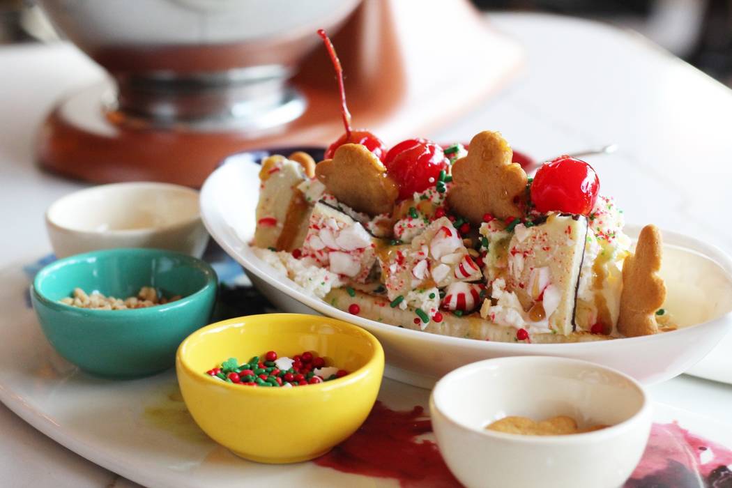 Fire and Ice Banana Split at Scotch 80 Prime is a holiday treat