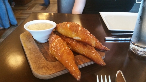 The menu also has an interesting selection of starters, or "Bites," as they are called here: popcorn with fried paprika peanuts and maple candied bacon; In the Gnudi, which is baked ricotta with truffle honey, fig jam, roasted almonds and cranberry and walnut crostini; shrimp ceviche with tomato lime; and pretzel bread served with spicy beer mustard and sea salt butter.