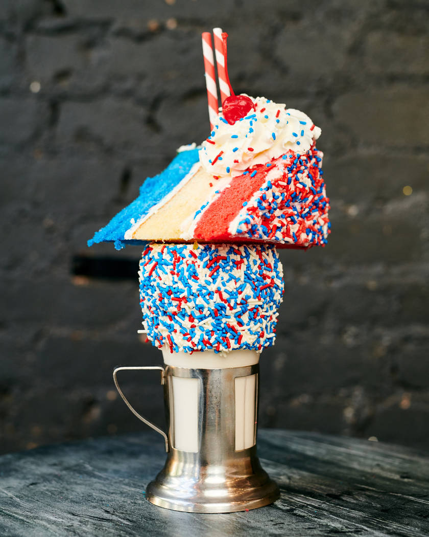 Black Tap Craft Burgers & Beer, The Venetian; 702-414-2337 or venetian.com: Red, White & Blue Cake Shake, vanilla shake with vanilla-frosted rim with red, white and blue sprinkles topped with red, white and blue cake, whipped cream, more sprinkles and a cherry, $19, Nov. 8-11, but free to all veterans and active-duty members of the military.