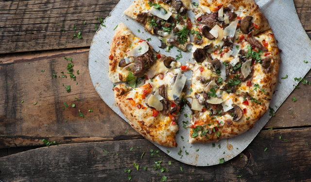 Flatbread spread with house-made tomato sauce is topped with pepperoni, smoked ham and bacon, red bell peppers, red onion and herb-roasted mushrooms, $16.