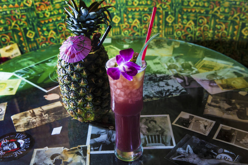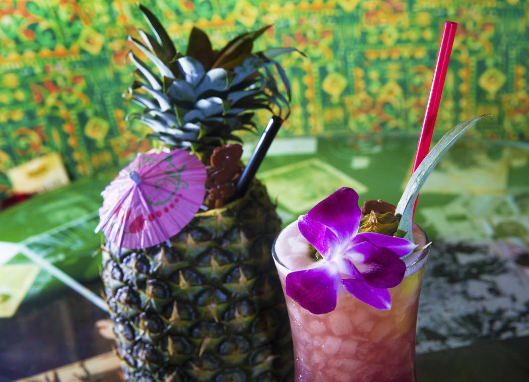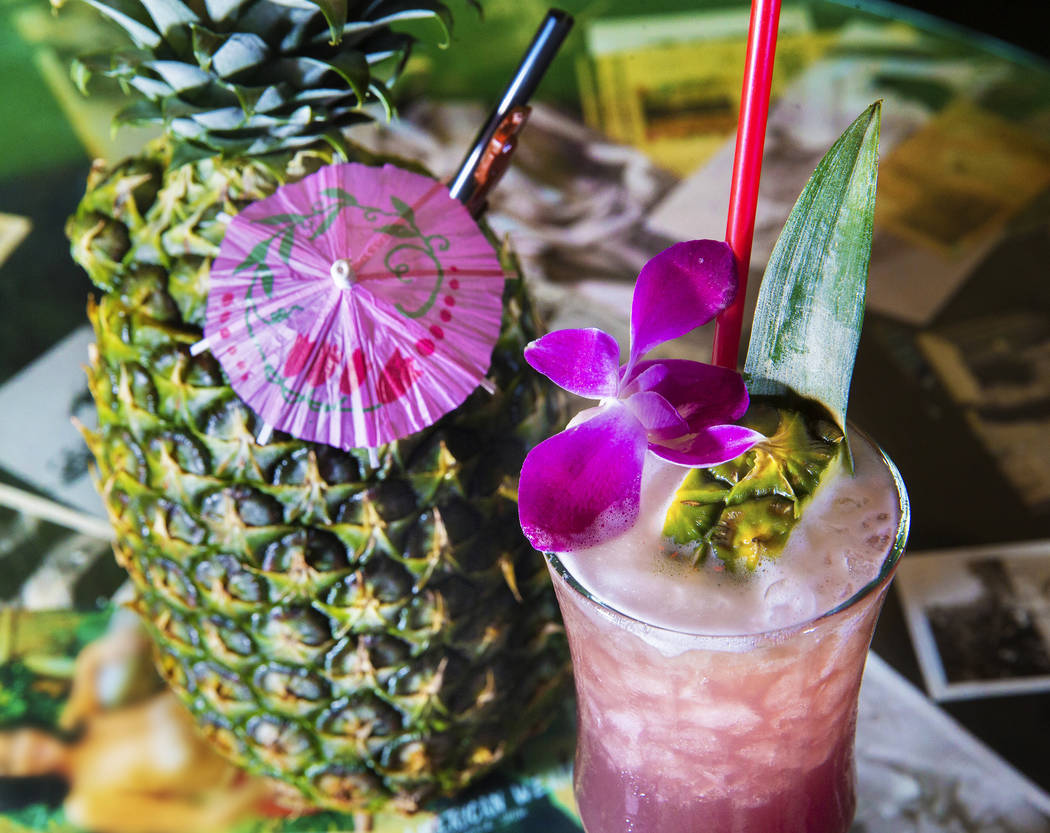 The kuuipo, with J. Wray golden rum, Lejay crème de cassis, pineapple juice, pineapple gomme syrup and lime juice in pineapple at The Golden Tiki on Saturday, May 27, 2017, in Las Vegas. Benjamin Hager Las Vegas Review-Journal @benjaminhphoto