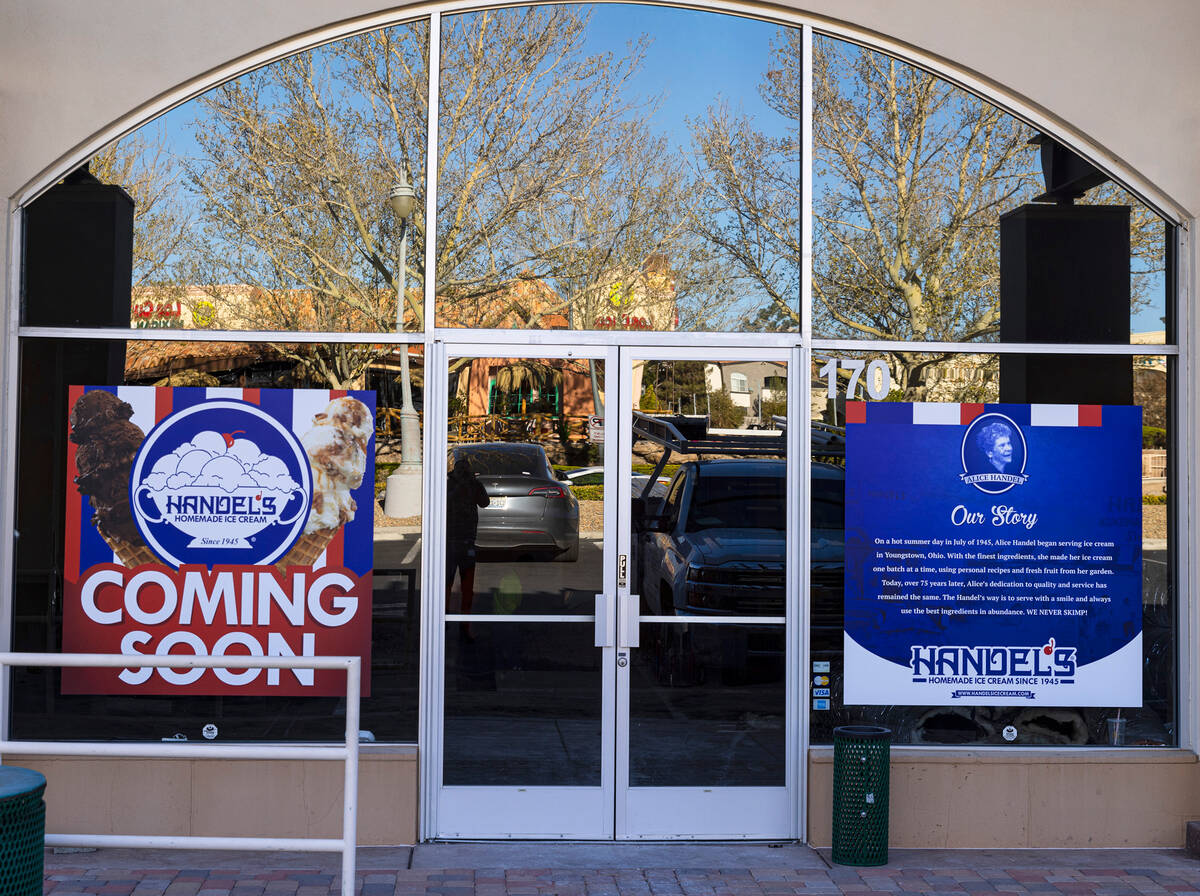 The website also lists as “opening soon” a store at 7345 Arroyo Crossing Parkway, and public records indicate a building project for “Handel’s Homemade Ice Cream” at that address, just south of the 215 Beltway.