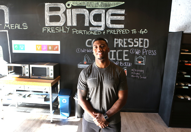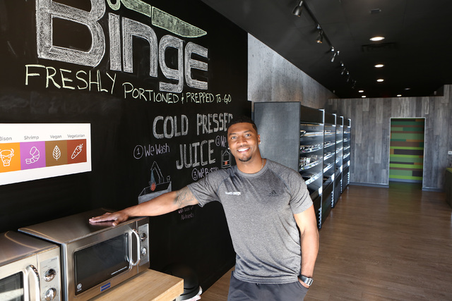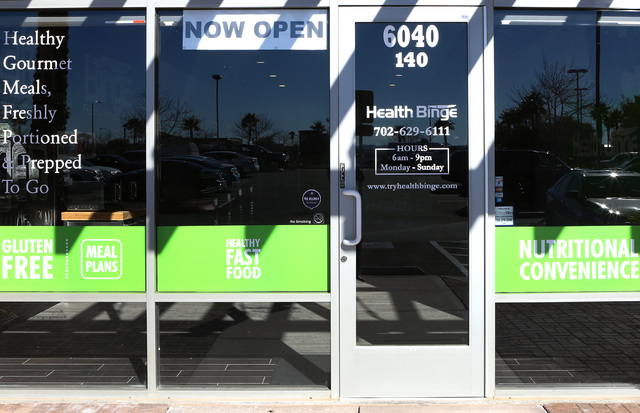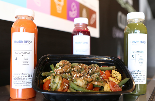 Health Binge opened in mid-December at 6040 W. Badura Ave. The refrigerated cases of grab-and-go packages lining the walls are arranged chronologically, starting with breakfast and moving into lunch and dinner entrees, with a special section for vegan and vegetarian choices and one for snacks, kids and desserts. A wall chart explains the color-coding of proteins. There also are cold-pressed juices, made under the Health Binge label by a company in San Diego.