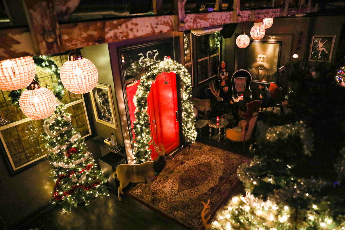 Decorations on display at Commonwealth in Downtown Las Vegas, Wednesday, Nov. 25, 2020. Corner Bar Management is hosting a " Holly Jolly on Fremont " experience, with holiday-themed drinks, over-the-top-decorations and live music at Commonwealth, Park on Fremont and The Laundry Room. (Rachel Aston/Las Vegas Review-Journal) @rookie__rae