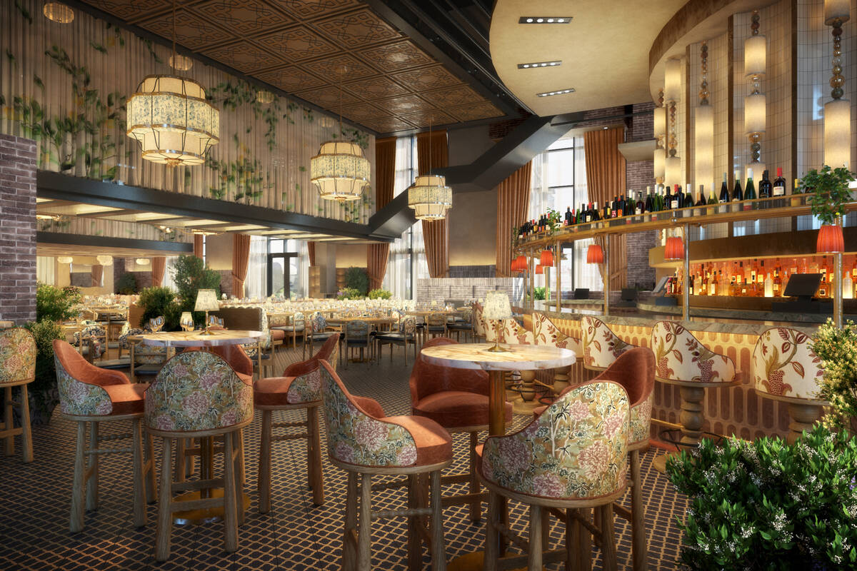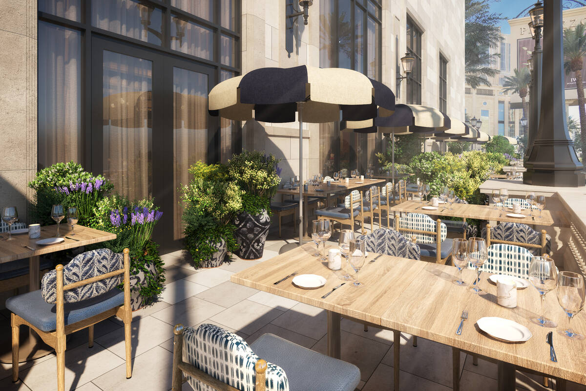According to a statement from the restaurant, the Strip-front terrace is now planted with olive, pomegranate and citrus trees. Inside, the design is composed of leather accents, rich velvet with botanical motifs, Venetian plaster walls with a custom mural, white-washed brick, custom lighting fixtures of Italian glass, cocktail tables and a striking blue marble bar.