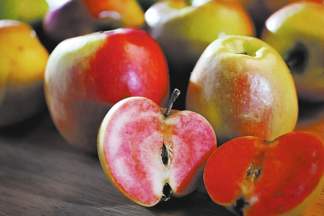 And how. Kerry Clasby, an urban forager whose California Family Farms is at the Bet on the Farm market from 10 a.m. to 1 p.m. Thursdays at Springs Preserve and the Downtown3rd Farmers Market from 9 a.m. to 3 p.m. Fridays near U.S. Highway 95 and Casino Center Drive, said one of the more unusual apples she has brought to market recently is the Pink Pearl, whose yellow skin conceals a shocking-pink interior worthy of a ’60s decor scheme. A low producer, it grows in mountainous areas.